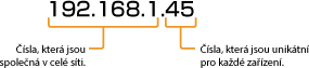 Adresu IPv4 zařízení lze přidělit automaticky dynamickým protokolem IP adresy, například protokolem DHCP, nebo zadat ručně. Připojujete-li zřízení ke kabelové síti LAN, přesvědčte se, že konektory kabelu LAN jsou pevně zastrčeny do portů (Připojení ke kabelové síti LAN).