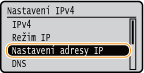 Vyberte možnost <Nastavení adresy IP> a stiskněte