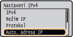Vyberte možnost <Auto. adresa IP> a stiskněte