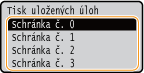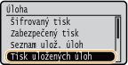 vyberte možnost <Tisk uložených úloh> a stiskněte tlačítko
