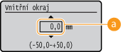 Můžete vybrat <Uprav. polohu tisku> v části <Uživatelská údržba> pro jemné zadání pozice tisku pro každý zdroj papíru. Rozsah dostupných hodnot přesahu je od -5,0 mm až +5,0 mm. Nastavení pozice tisku