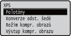 Všechna nastavení týkající se souborů XPS dostupných pro přímý tisk z USB a přímý tisk jsou uvedena s krátkým popisem. Výchozí nastavení jsou označena křížkem (