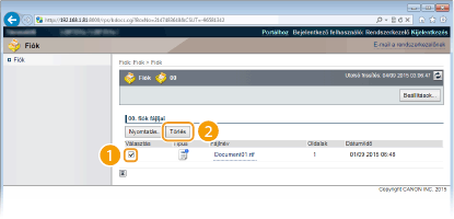 Jelölje be a törlendő dokumentum jelölőnégyzetét, majd kattintson a [Törlés] gombra.