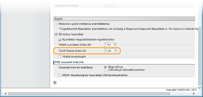 A dokumentumok automatikus törlésének megakadályozásához válassza a [Ki] lehetőséget.