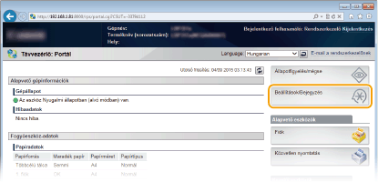 Kattintson a [Beállítások/Bejegyzés] gombra.