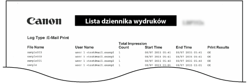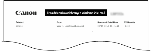 Pozwala wydrukować rejestr odebranych wiadomości e-mail w formie listy.