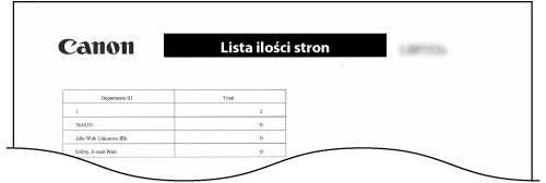 Pozwala sprawdzić całkowitą liczbę wydrukowanych stron dla poszczególnych wydziałów poprzez wydrukowanie raportu przy włączonej opcji [Zarządzanie ID wydziału].