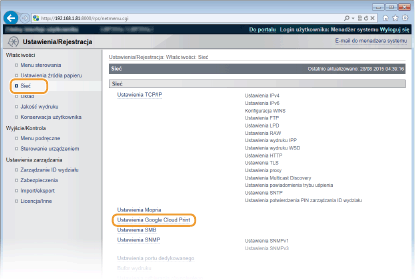 Włącz funkcję Google Cloud Print w urządzeniu. Funkcję Google Cloud Print można również wyłączyć.