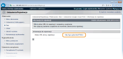 Kliknij adres URL wyświetlony w formie łącza oznaczonego jako [Adres URL strony rejestracji].