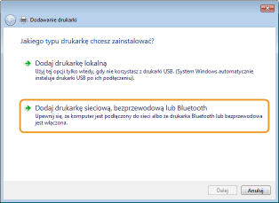 W przypadku korzystania z systemu operacyjnego Windows 7/Server 2008 kliknij [Dodaj drukarkę sieciową, bezprzewodową lub Bluetooth].