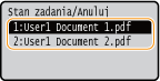 Anulowanie z poziomu zdalnego interfejsu użytkownikaWydruk można anulować na stronie [Stan zadania] w Zdalnym interfejsie użytkownika: Sprawdzanie bieżącego stanu drukowanych dokumentów
