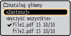 Jeśli w kroku 1 na ekranie została wybrana opcja <Sortuj pliki>, wówczas podczas wybierania plików do drukowania można zmienić kolejność ich wyświetlania.
