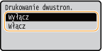 Wybierz druk jednostronny lub dwustronny. Za pomocą przycisków