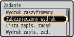 wybierz opcję <Zabezpieczony wydruk> i naciśnij przycisk