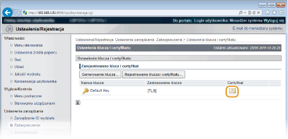 Kliknij [Ustawienia klucza i certyfikatu], aby zweryfikować parę kluczy lub [Ustawienia certyfikatu CA], aby zweryfikować certyfikat CA.