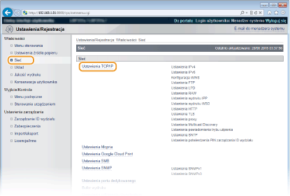 Konfiguracja protokołów drukowania i funkcji protokołu WSD.