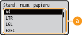 Wspólne ustawieniaUstawienia są takie same, jak dla opcji <Źródło papieru> w Menu konfiguracji. Wprowadzone tutaj ustawienia zostaną również zastosowane do ustawień <Źródło papieru>.