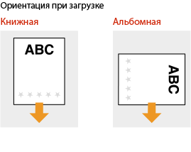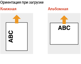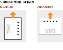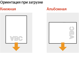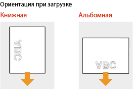 В этом разделе приводится, главным образом, описание порядка загрузки уже отпечатанной бумаги с правильным размещением лицевой стороны и в надлежащей ориентации. Описание общей процедуры загрузки бумаги в кассету для бумаги или универсальный лоток см. в следующих разделах. |