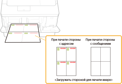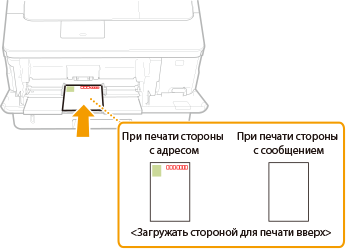 Загружайте открытку стороной для печати вверх и коротким краем в сторону аппарата, если это обычная открытка или открытка 4 на 1, либо длинным краем в сторону аппарата, если это — открытка для ответа.