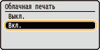 Выберите <Выкл.> или <Вкл.> и нажмите