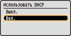 Если выключить питание и снова включить его, будет назначен IP-адрес, отличающийся от текущего. В результате печать может стать невозможной. Для использования DHCP укажите одну из следующих настроек после консультации с администратором сети.