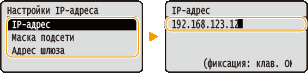 Выберите для настройки параметров IP-адреса путем ввода IP-адреса вручную.
