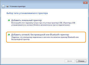Если используется Windows 7/Server 2008, щелкните [Добавить сетевой, беспроводной или Bluetooth-принтер].