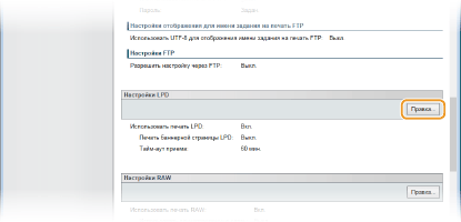 1 | Нажмите кнопку [Правка] в разделе [Настройки LPD]. ![]() |