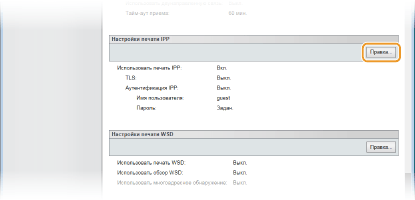 1 | Нажмите кнопку [Правка] в разделе [Настройки печати IPP]. ![]() |