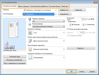 Измененные здесь настройки сохраняются вместе с документом. Следующая печать документа выполняется с сохраненными настройками.