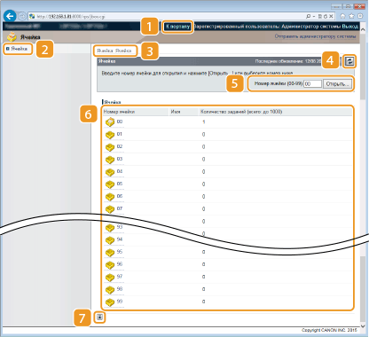 Отображение страницы [Ячейка]. Можно печатать и удалять документы, хранящиеся в аппарате.