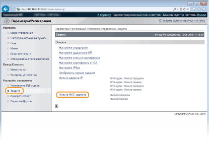 Используется для ограничения приема данных аппарата компьютером с помощью указания MAC-адресов.