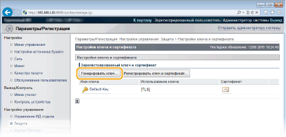 Пару ключей невозможно удалить, если ключи используются в каких-то целях, например, если под [Использование ключа] отображается "TLS" или "IEEE 802.1X". В этом случае отключите функцию или заменить пару ключей перед их удалением.