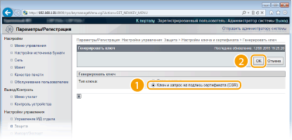 Выберите[Ключ и запрос на подпись сертификата (CSR)] и щелкните [OK].