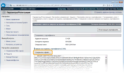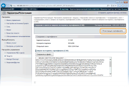 Пару ключей, сгенерированных посредством запроса на подпись сертификата (CSR), можно использовать только после регистрации сертификата. Как только центр сертификации выдаст цифровой сертификат, зарегистрируйте его, выполнив описанную ниже процедуру.
