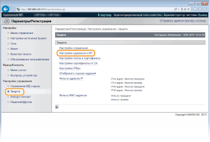 1 | Щелкните [Защита]  [Настройки удаленного ИП]. |