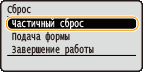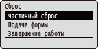 Выберите для стирания всех данных еще не завершенных заданий печати (частичная перезагрузка). Можно также выбрать этот пункт, чтобы выполнить полную перезагрузку для ввода в действие измененных настроек.