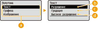 Можно выбрать способ печати для передачи полутонов (переходы между темными и светлыми частями изображения). Полутона можно задавать для каждого типа данных изображений в одном документе.