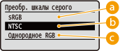 Цветные данные преобразуются в черно-белые таким образом, чтобы их вид соответствовал телевизионному изображению (NTSC).