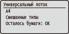 Выберите для отображения текущих заданных формата и типа бумаги, а также оставшегося уровня бумаги для каждого источника бумаги.