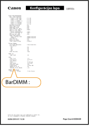 Izdrukājiet Configuration Page un apstipriniet, ka “PCL” sadaļā ir redzams “BarDIMM”.
