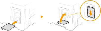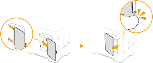 Aizveriet ROM vāku, iebīdot ROM vāka fiksatoru ar bultiņu norādītajā virzienā.