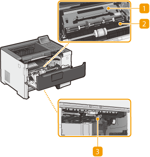 Ja papīrs iestrēdzis iekārtas iekšpusē, paceliet padeves vadotni virzienā pret iekārtas aizmuguri un izņemiet iestrēgušo papīru. Papildinformāciju skatiet tiešsaistes rokasgrāmatas vietnē sadaļā “Traucējummeklēšana (FAQ)”.