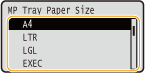 , lai izvēlētos <MP Tray Paper Size>, un nospiediet
