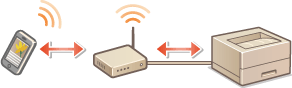 Izveidojiet savienojumu starp mobilo ierīci un iekārtu, izmantojot bezvadu LAN maršrutētāju. Lai uzzinātu, kā iestatīt un izmantot bezvadu LAN maršrutētāju un mobilās ierīces, skatiet ierīču rokasgrāmatas vai sazinieties ar ražotājiem.