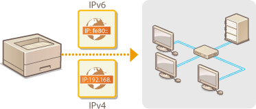 Lai savienotu iekārtu ar tīklu, ir nepieciešama unikāla tīkla IP adrese. Ir pieejamas divas IP adrešu versijas: IPv4 un IPv6. Konfigurējiet šos iestatījumus atkarībā no tīkla vides. Lai izmantotu IPv6 adreses, ir pareizi jākonfigurē IPv4 adreses iestatījumi.