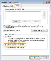 Noklikšķiniet uz cilnes [WINS], izvēlieties [Iespējot NetBIOS pār TCP/IP] un tad noklikšķiniet uz [Labi].