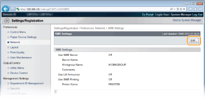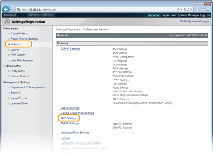 SMB drukāšanas funkciju var iespējot vai atspējot arī darbības paneļa iestatījumu izvēlnē. SMB