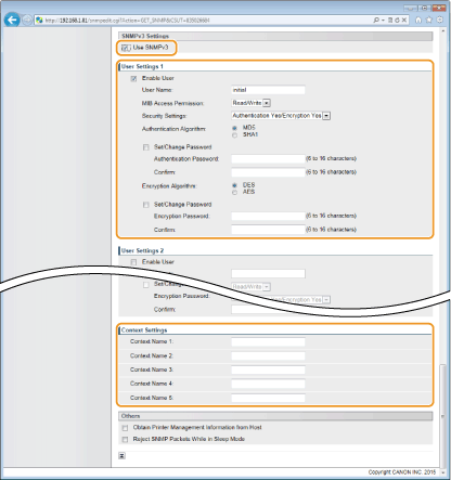 Ja atzīmēsit šo izvēles rūtiņu, lietojumprogrammām, kas izmanto SNMP protokolu, piemēram, Canon programmatūras imageWARE Series, var tikt liegta piekļuve iekārtai.