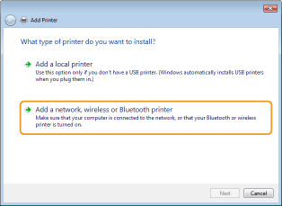 Ja lietojat Windows 7/Server 2008, noklikšķiniet uz [Pievienot tīkla, bezvadu vai Bluetooth printeri].